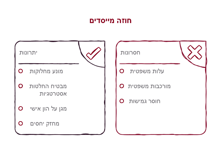 האמת: חוזה מייסדים הוא בדיוק ההפך – הוא המפה שתעזור לכם לא להגיע לגירושין. חוזה טוב מגדיר איך פותרים בעיות קטנות לפני שהן הופכות לקרע גדול.